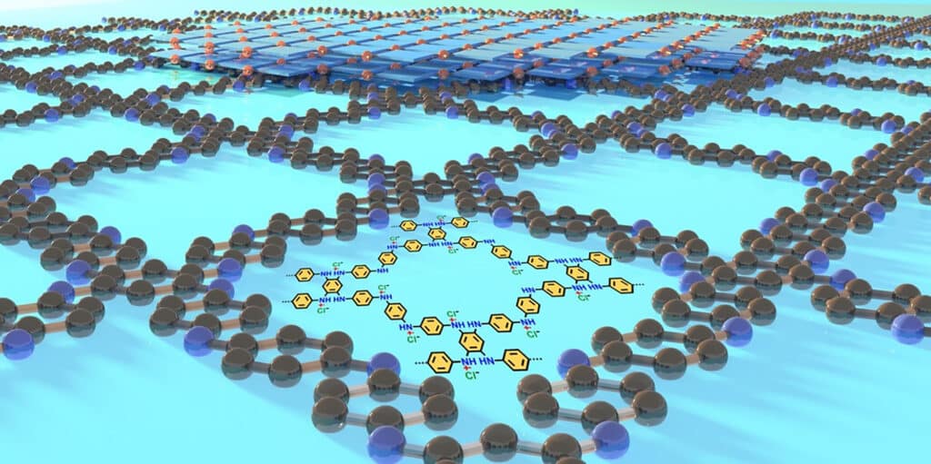 Eine internationale Forschungsgruppe hat ein zweidimensionales leitendes Polymer entwickelt – eine spezielle, geordnete Form von Polyanilin, die eine aussergewöhnliche elektrische Leitfähigkeit und ein metallisches Ladungstransportverhalten aufweist. Die Entdeckung ist ein grundlegender Durchbruch in der Polymerforschung, sie eröffnet neue Möglichkeiten für die Entwicklung leistungsfähigerer organischer Elektronik.