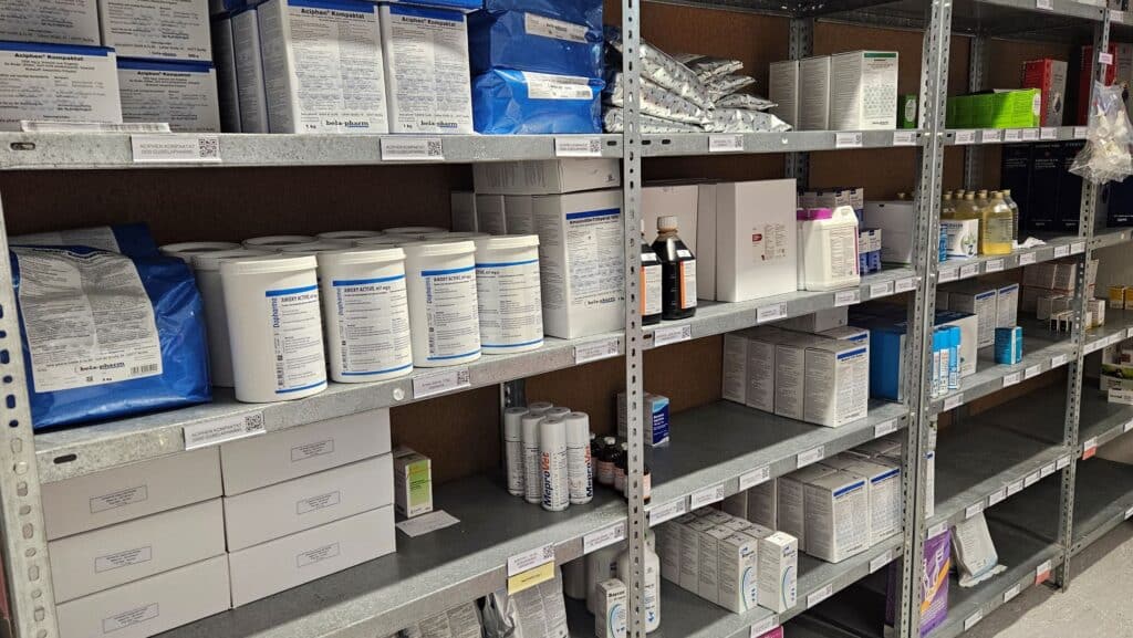 Der TGD Bayern unterhält an allen Standorten Apotheken mit Medikamenten, die aus rechtlichen Gründen streng getrennt sein müssen. An jedem Standort ist ein Arzt verantwortlich für die Medikamentenlogistik. Die Angestellten müssen wissen, wo das jeweilige Medikament liegt, was dank des aufgedruckten Barcodes problemlos möglich ist. Wenn eine Packung die Apotheke verlässt, wird der neue Standort des Medikaments in Limsophy erfasst. Der neue Standort ist in diesem Fall der Kofferraum eines Tierarztes, wo die Medikamente bis zur Abgabe an den Landwirt verbleiben. Falls bei der Behandlung nur ein Teil der Verpackungseinheit verbraucht wird, notiert man auch das in Limsophy und die restlichen Packungen oder Flaschen können bei einem neuen Einsatz weiterverwendet werden. Diese mobilen Apotheken werden bei der halbjährlichen Inventur des TGD Bayern genauso wie die Apotheken an den Standorten mitkontrolliert. Das LIMS ermöglicht jederzeit eine Übersicht über den Bestand. Ein weiterer Vorteil der LIMS-Integration: die Medikamentenlogistik ist automatisch mit dem Rechnungs- oder Berichtsmodul verknüpft. So wurde aus der anfänglichen Idee einer einfachen Verwaltung von Substanzen eine komplette digitale Medikamentenverwaltung.
