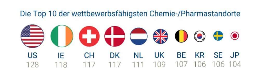 Im GICI 2025 belegt der Schweizer Chemie- und Pharmastandort den dritten Rang und gehört in allen 4 Dimensionen der Wettbewerbsfähigkeit (Performance, Marktstellung und Leistungsfähigkeit, Innovation und Technologieführerschaft sowie Standortqualität) zu den besten 5 Ländern. Besonders hervorzuheben sind die hohe Qualität der Infrastruktur, die finanzielle Stabilität und die Verfügbarkeit hochqualifizierter Fachkräfte. Doch bei der digitalen Durchdringung und den regulatorischen Rahmenbedingungen verliert die Schweiz Terrain.
