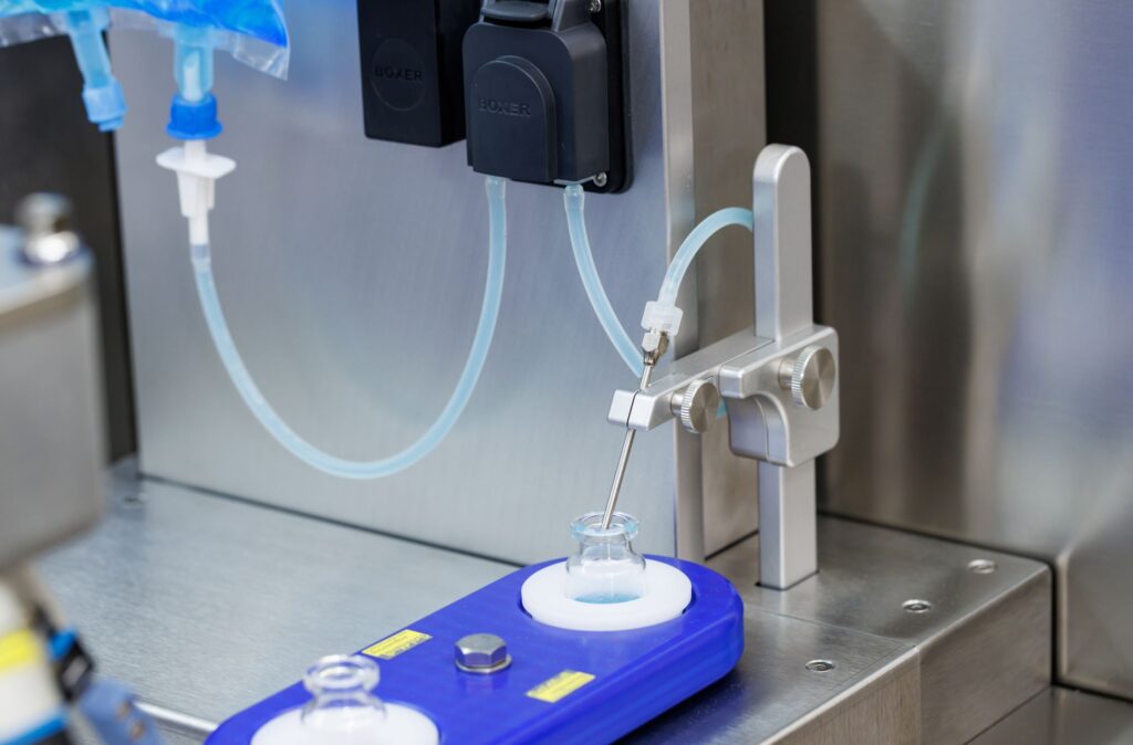 Die Dosierpumpe füllt die Injektionslösung in die Vials. (Bild: Goldfuss Engineering)