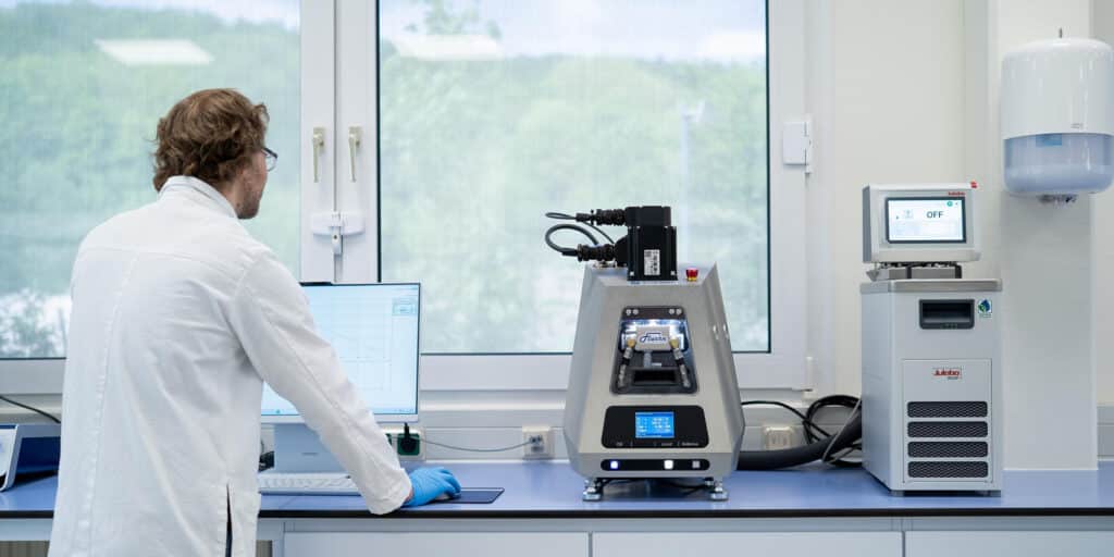 Flucon entwickelt und vertreibt hochspezialisierte Messsysteme zur Analyse von Flüssigkeiten unter praxisnahen Bedingungen – von Schmierstoffen, Kühlmitteln bis hin zu Farben und Lacken. Für das Unternehmen steht und fällt die Qualität von Messdaten mit der Qualität der Temperierung. Deshalb setzt Flucon in zentralen Prüfprozessen auf Thermostate von Julabo. Systeme der CORIO- und MAGIO-Serien gewährleisten eine hochpräzise Temperaturführung, stabile thermische Randbedingungen und reproduzierbare Ergebnisse – inklusive moderner Schnittstellen für die Einbindung in Laborautomatisierungen.