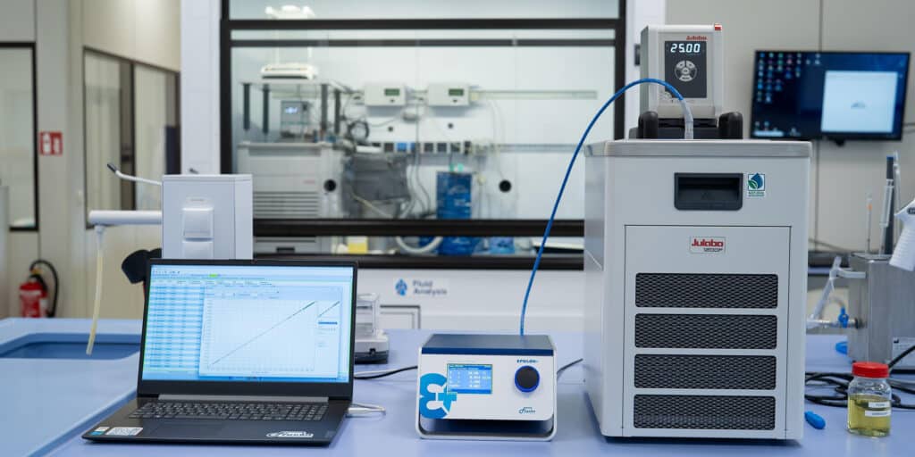 Die Analyse von Flüssigkeiten erfordert höchste Genauigkeit – und diese steht und fällt mit der Temperierung. Die Flucon Fluid Control GmbH aus Niedersachsen setzt deshalb auf Thermostate von Julabo, die stabile Rahmenbedingungen und reproduzierbare Ergebnisse ermöglichen. So wird Messtechnik zum verlässlichen Werkzeug in Forschung und Industrie.