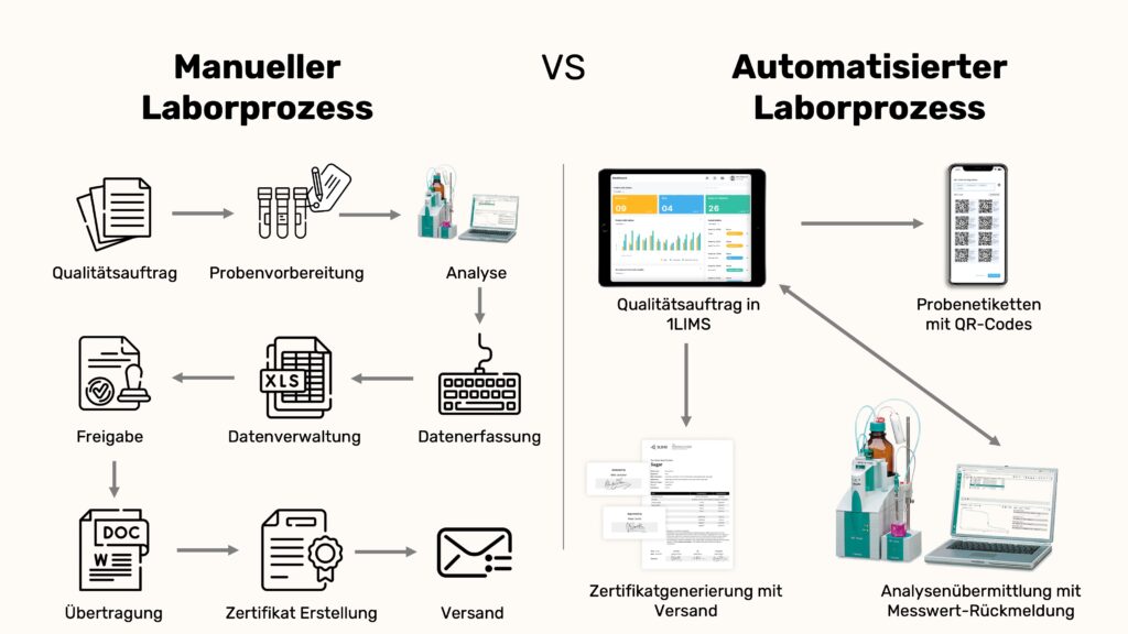 Die Integration geht weit über die reine Datenübertragung hinaus und umfasst die Automatisierung kompletter Arbeitsabläufe. Von der Probenentnahme bis zur Berichtserstellung des Endprodukts entsteht ein durchgängiger, nachvollziehbarer digitaler Prozess, der jeden Schritt dokumentiert und überwacht.